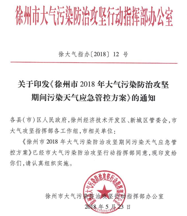 下載詳情:《徐州市2018年大氣污染防治攻堅期間污染天氣應急管控方案》