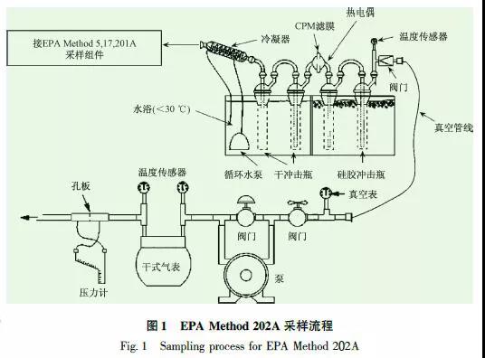 從EPA的定義可以看出,可凝結(jié)顆粒物是混合物。圖1為EPA Method 202A 采樣流程,采用“控制冷凝+慣性撞擊”的方式對可凝結(jié)顆粒物進行捕集。